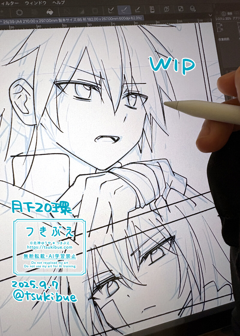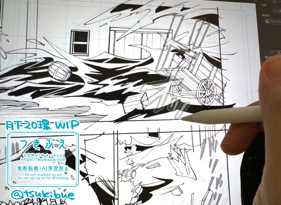 SNSにアップした途中経過です。130pぶりのカミユ(1コマだけ)。